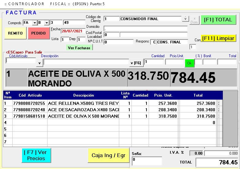 Manejo de stock, Cierre Diario Z, Códigos de Barra.